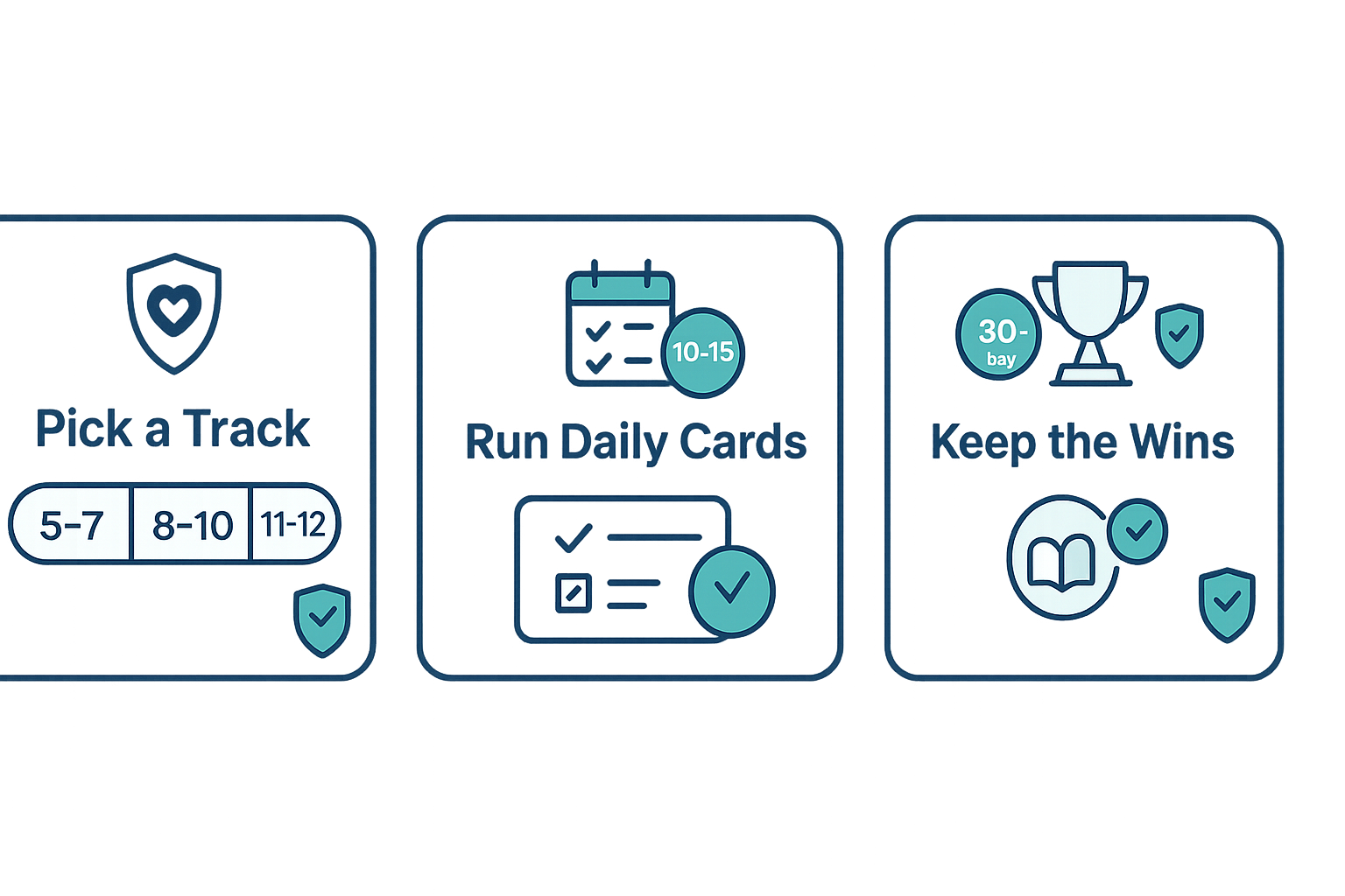 Week 1 – Measure & Calm the Battles: Track real usage, introduce power-down rituals, and set smooth transitions so shut-offs don’t explode.